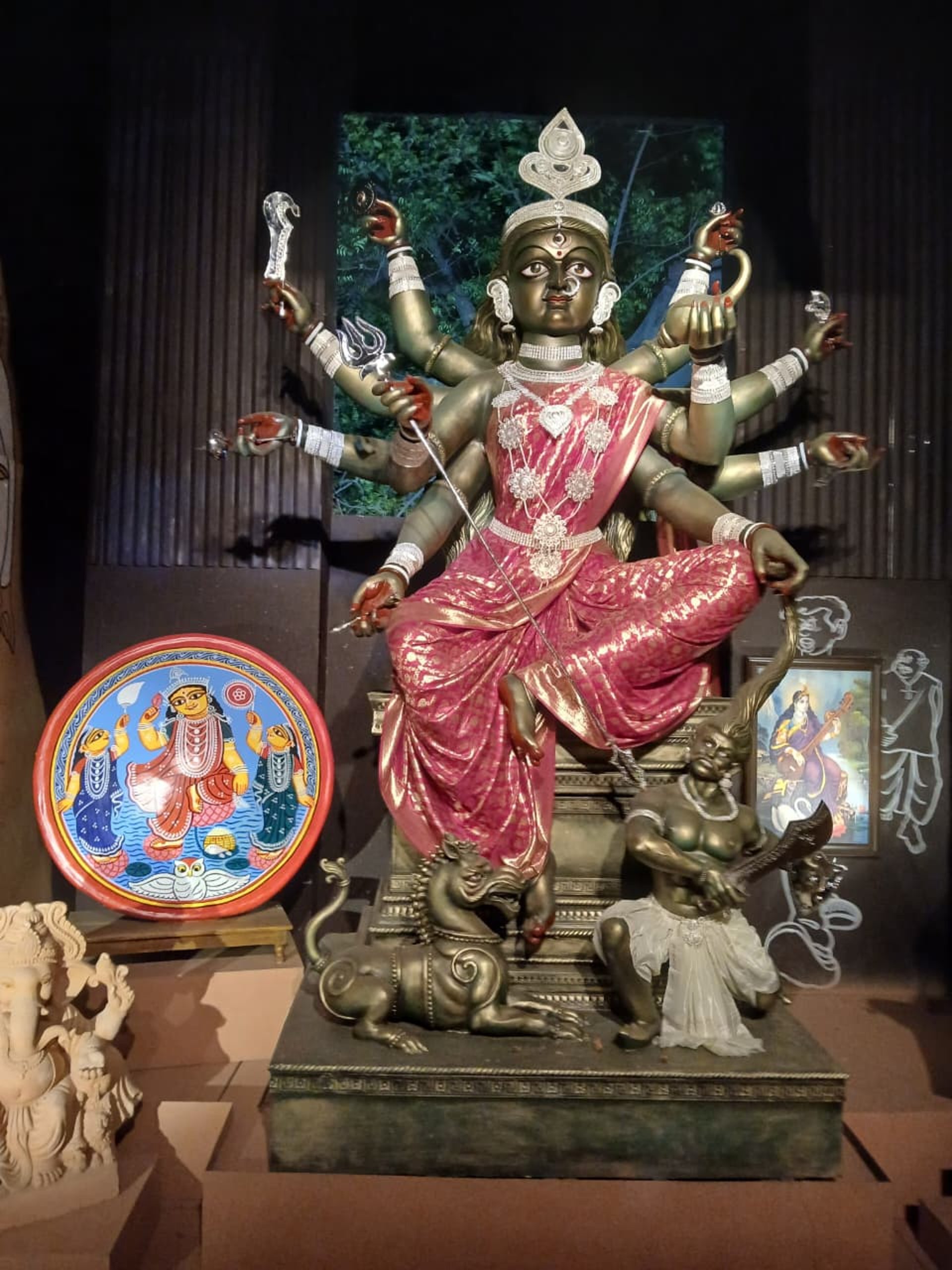 By the end of our North Kolkata exploration, we had seen almost every pandal. Each had its own unique theme, many of them moving pandals with intricate mechanisms. The Jagat Mukherjee pandal, for instance, showcased AI, complete with moving robots-futuristic art in the midst of traditional streets. I kept thinking about how the artist dream up such unique ideas, then meticulously plan, explain to their teams, and execute every single detail. That is why they are true artists, I realized.